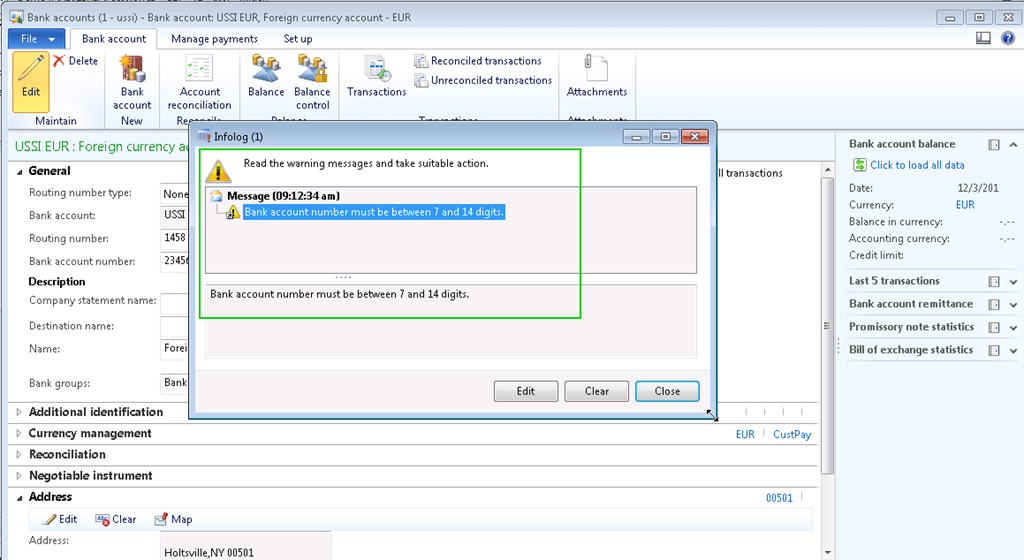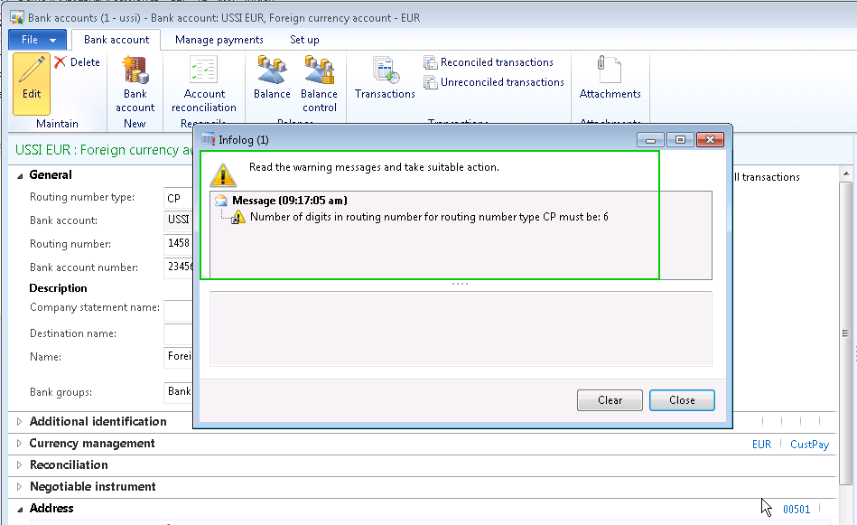 Earlier in AX 2009, there was no real-time validation on the bank account number and routing number fields and users could enter any random values into those fields.