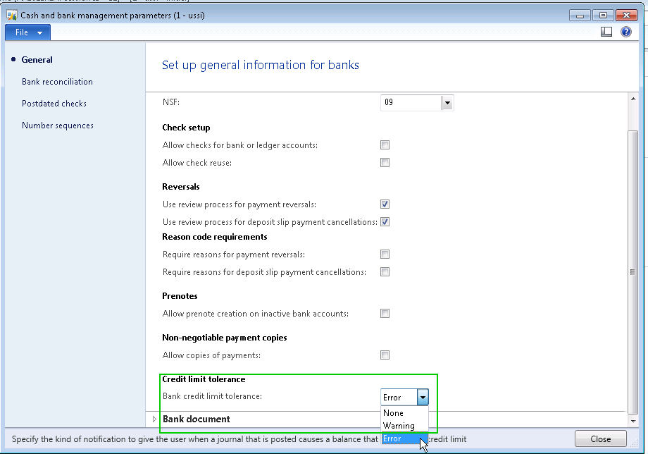 We can now define credit limits and credit limit tolerance thresholds for a bank account in AX 2012. These credit limit check gets triggered during making a vendor payment(with bank as offset).