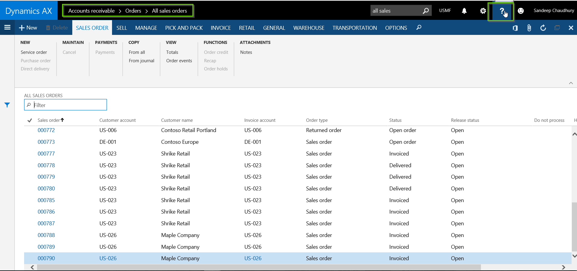 - Now, as soon as the user is on this form, let us say they are new to the system and are not fully aware of the steps and best practices they need to follow in order to create the order. The immediate thing that comes to mind is “I NEED HELP“. So they click the Help icon on the top right of the page.