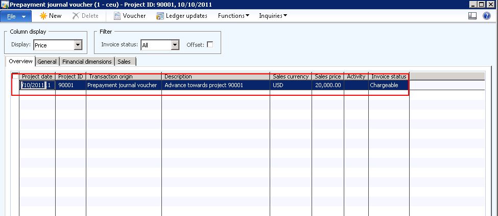 3. Click General tab and select offset account company = CEE, account type = Ledger and account = 6300