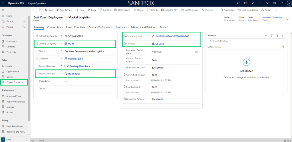 - Ensure you are on version 4.140.0.239 or late for Project Operations.
