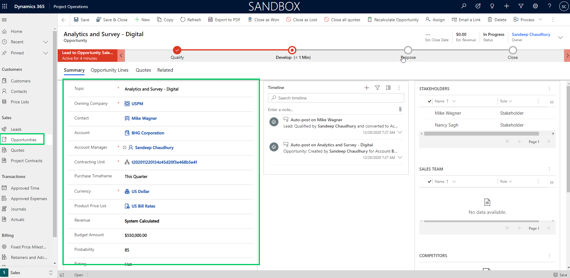 - Ensure you are on version 4.140.0.239 or late for Project Operations.